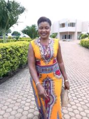Mme AMIEZI Marie-Josiane, criminologue de formation a toujours rêvé de voir un monde où l'éducation de la jeune fille est gratuite. Elle est présidente de l'ONG Solidarité Sans Frontières (SSF).